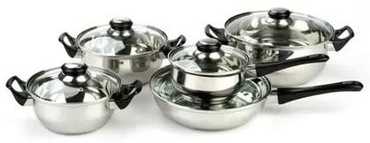 10-dielnu sadu riadu Apetit využijete pri každodennom varení. Sada riadu je vyrobená z nerezu s priehľadnou sklenenou pokrievkou s otvorom pre odvod pary a čiernymi úchytkami. Nerezové riady sú vhodné na umývanie v umývačke riadu, ale časté umývanie pomocou dlhých programov a agresívnych umývacích prostriedkov môže spôsobiť neodstrániteľné zmeny na povrchu. Riad nie je vhodný na indukciu.Sada obsahuje: