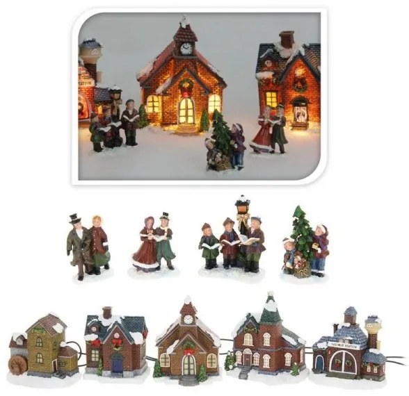 Dekoračná vianočná dedinka s LED osvetlením, ktoré v tme vytvára nádherný svetelný efekt. Pozostáva s 5 svietiacich domčekov a 4 pekných figúriek. Vďaka tejto dedinke sa aj váš domov dokáže ponoriť do rozprávkovej zimnej atmosféry. Výška: 8 – 12 cm.
