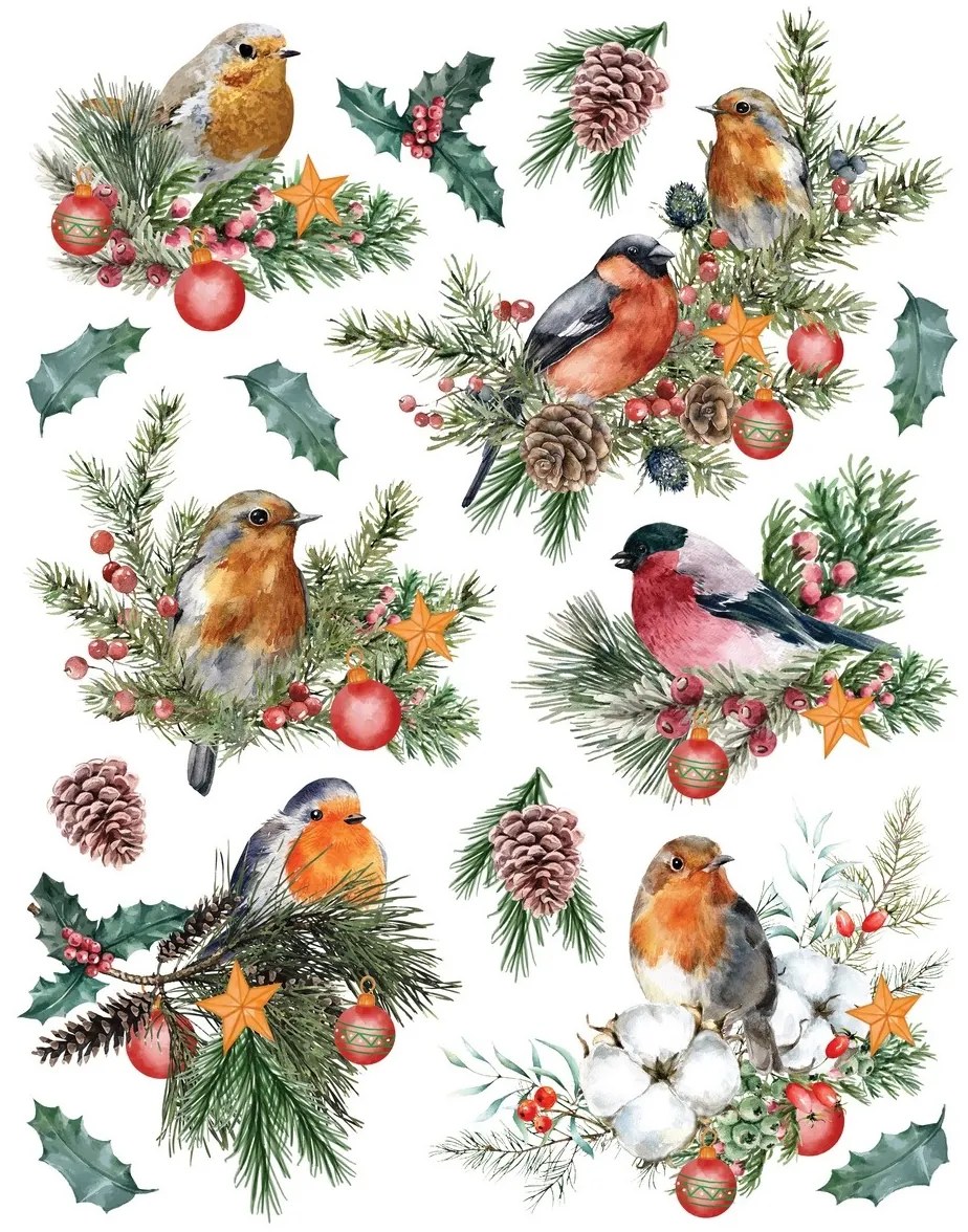 Vytvorte si kúzelnú vianočnú atmosféru s našou nádhernou nálepkou na okno s motívom vtákov Táto dekorácia prináša do vášho domova živé farby a radostné vianočné prvky, ktoré okúzlia vás aj vašich hostí. Pestrofarebné vtáky, štylizované do vianočnej témy, obklopené jemnými vetvičkami.