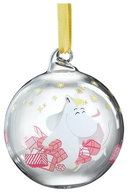 Dizajn: Tove Jansson Sklenená vianočná ozdoba nesie milý motív Muminka a slečny Ferky s vianočnými darčekmi. Ozdoba je ideálna na zavesenie na vianočný stromček alebo na vetvičku vo váze a zaručene u vás doma vyčaruje rozprávkové Vianoce. Vyrobené ručne a balené v krásnej darčekovej krabičke. ROZMERYPriemer 7 cm MATERIÁLSklo, saténová šnúrka na zavesenie ORIGINÁL MOOMIN CHARACTERS™Výrobok nesie ochrannú značku Moomin Characters™, ktorá garantuje, že sa jedná o originál z licencovanej kolekcie.
