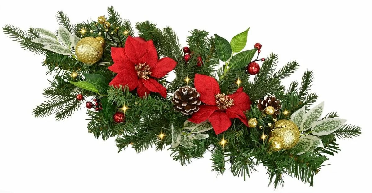 Ozdobte svoj domov elegantnou girlandou s červenou poinsetiou. Táto výnimočná dekorácia, zdobená vkusnými červenými a zlatými guľôčka, bazami a šiškami, je dokonalým spôsobom, ako pridať sviatočnú atmosféru na vašu sviatočnú tabuľu alebo do ktoréhokoľvek kúta vášho domova. 10 LED svetielok s teplým osvetlením dodáva príjemnú a útulnú atmosféru. Doplnená o vetvičky cezmíny, girlanda vytvára harmonické spojenie s prírodou. Nepotrebujete sa obávať káblov – napájanie funguje na 2 AA batérie (nie je súčasťou balenia), čo znamená, že môžete umiestniť girlandu kamkoľvek bez obmedzenia. Ukážte svoju kreativitu a preneste vianočné kúzlo do vášho domova.