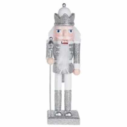 Luskáčik v bielo-striebornom oblečení so žezlom 25 cm