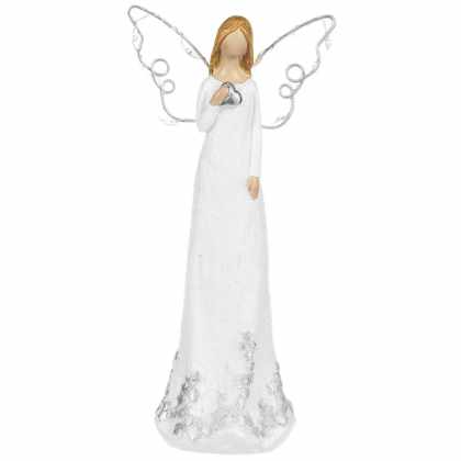 Vianočná dekorácia Anjel so svietiacimi krídlami, polyresin, 19 cm