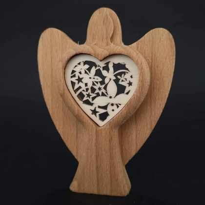 AMADEA Drevený anjel s vkladom – ornament, masívne drevo, výška 10 cm