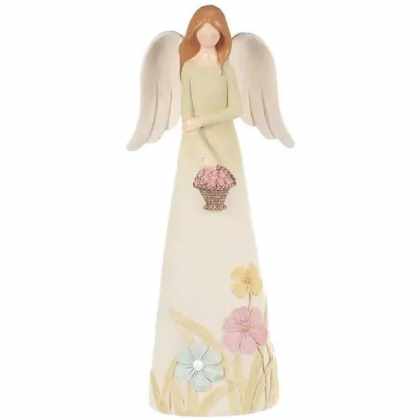 Polyresinový anjel so strieborným srdcom, 20 x 7,5 cm