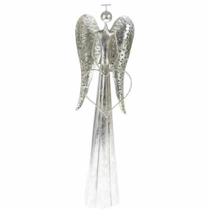 Vianočná kovová LED dekorácia Angel with heart strieborná, 17 x 58 cm