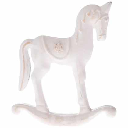Vianočná drevená dekorácia Hojdací koník biela, 17 x 14 cm