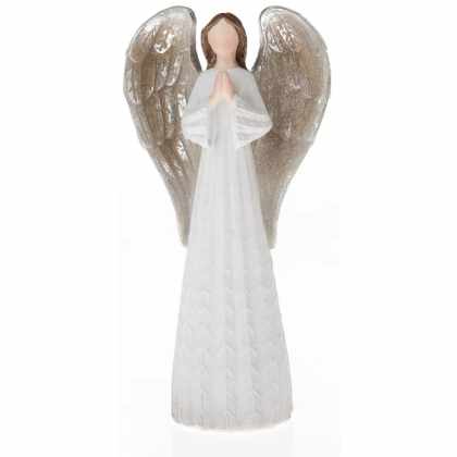 Polyresinový anjel so striebornými krídlami biela, 20 x 10 cm