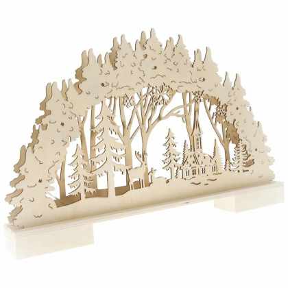 Vianočná drevená LED dekorácia Jelene a kostolík hnedá, 41 x 26 x 5 cm