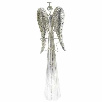 Vianočná kovová LED dekorácia Angel with star strieborná, 23 x 70 cm