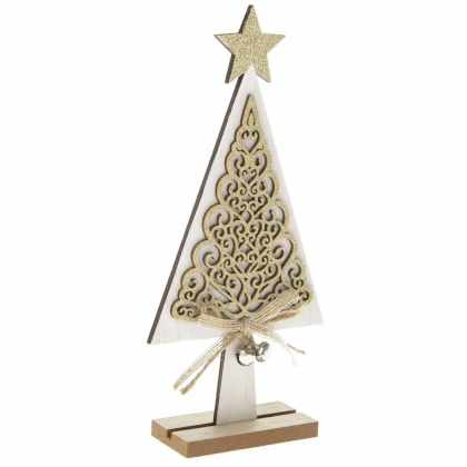 Drevený vianočný stromček Ornamente biela, 11 x 23 x 4 cm