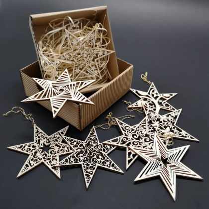 AMADEA Vianočný set drevených ozdôb – hviezdy 8 druhov + krabička