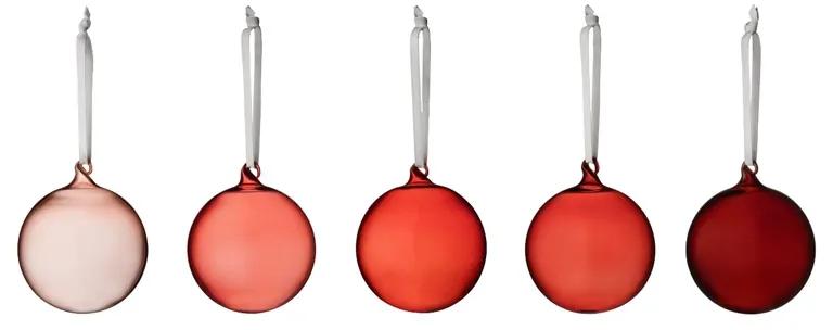 Sklenené vianočné ozdoby Iittala v rôznych odtieňoch červenej prinesú k vám domov slávnostnú atmosféru. Sklenené banky sú ideálne na zavesenie na vianočný stromček alebo na vetvičku vo váze. Balenie obsahuje 5 ozdôb zabalených v krásnej darčekovej krabičke. ROZMERYPriemer 8 cm MATERIÁLRučne fúkané a dekorované sklo, šnúrka na zavesenie