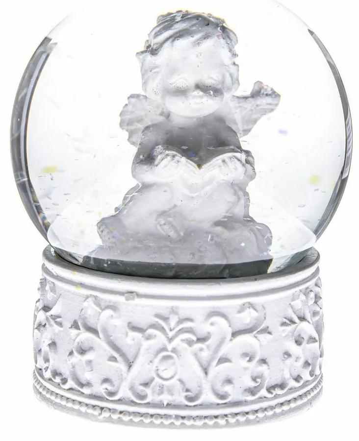 Krásne snežítko s anjelikom ozvláštni poličku alebo pracovný stôl. Má zdobený podstavec.