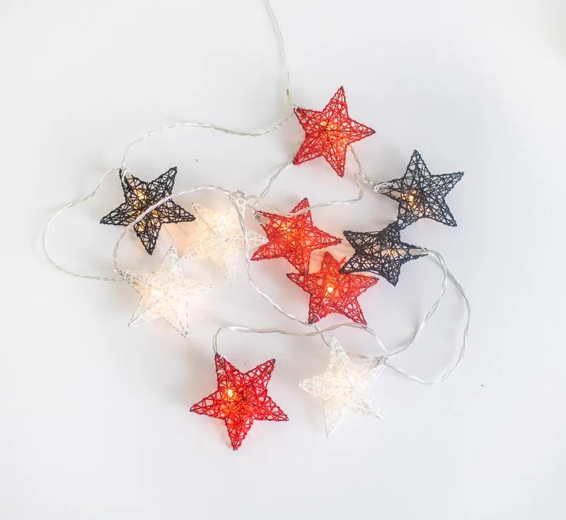 Technické údaje: Ďalšie funkcie:Nestmievateľné,Áno, so šnúrou a zástrčkou Dodajte svojim vianočným dekoráciám hravý a sviatočný nádych s vonkajšími svetelnými reťazami Stellina! Tento 3,3-metrový veniec je ozdobený 10 farebnými hviezdami v červenej, bielej a čiernej farbe, ktoré sú krásne osvetlené teplými LED svetlami. Ideálne na vytvorenie veselého, sviatočného prostredia vo vnútri aj vonku. Zaveste ho pozdĺž plota, balkóna alebo ho prineste dovnútra ako pútavý doplnok do obývačky alebo na vianočný stromček. Svetelné reťaze Stellina okamžite dodajú každému priestoru veselú a iskriacu vianočnú atmosféru. Nechajte svoje Vianoce žiariť s týmito farebnými hviezdami!