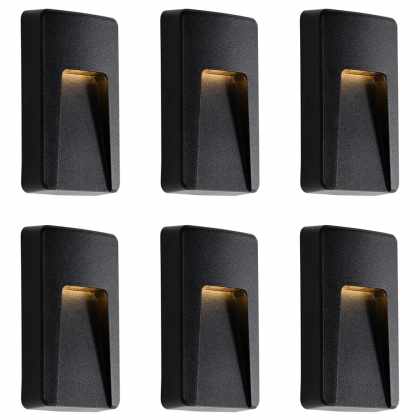 Sada 6 čiernych obdĺžnikových vonkajších nástenných svietidiel vrátane LED IP65 – Gem