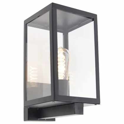 Moderné vonkajšie obdĺžnikové nástenné svietidlo čierne so sklom – Rotterdam
