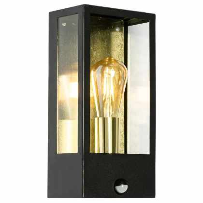 Vonkajšie nástenné svietidlo čierne so zlatom a detektorom pohybu – Rotterdam