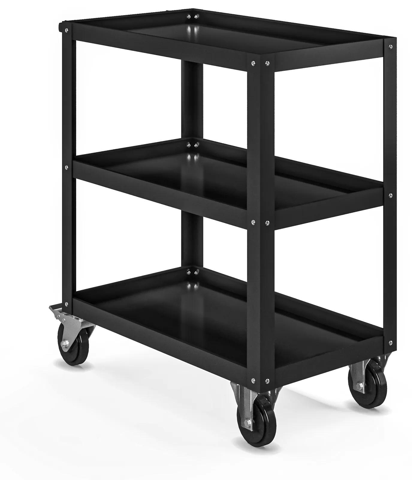 Vozík na náradie HUGO z kolekcie All Black je funkčný kúsok, vďaka ktorému budete mať potrebné náradie vždy po ruke. Do troch políc sa zmestí náradie, ktoré potrebujete na práve aktuálny úkol. Vďaka tomu bude vaša práca oveľa plynulejšia, pretože nebudete musieť neustále prechádzať medzi pracovným miestom a skriňou s náradím.
