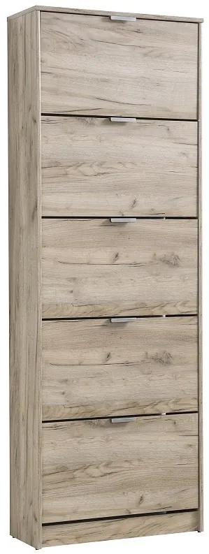 Dizajn botníku je v modernom dekore dub šedý a je vybavený plastovými úchytkami. Neutrálny dekor sa bude jednoducho kombinovať s ostatným nábytkom v miestnosti. Botník je vyrobený z kvalitného lamina hrúbky 16mm, ktoré poteší nenáročnou údržbou a odolnosťou proti poškodeniu a vlhkosti. Rozmery botníku Vincent sú 67x28x191,5cm (š, h, v).