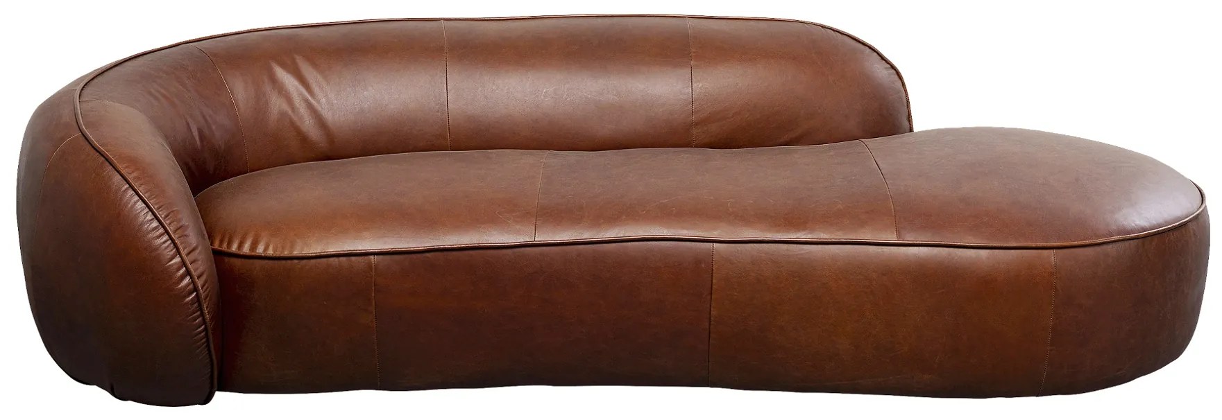 Luxuxné ležadlo Wonder v hnedom prevedení z hoväzdej kože je zárukou vysokej kvality a pohodlia. Jeho zaoblený dizajn a ozdobné švy vytvárajú veľmi pekný a elegantný kúsok.