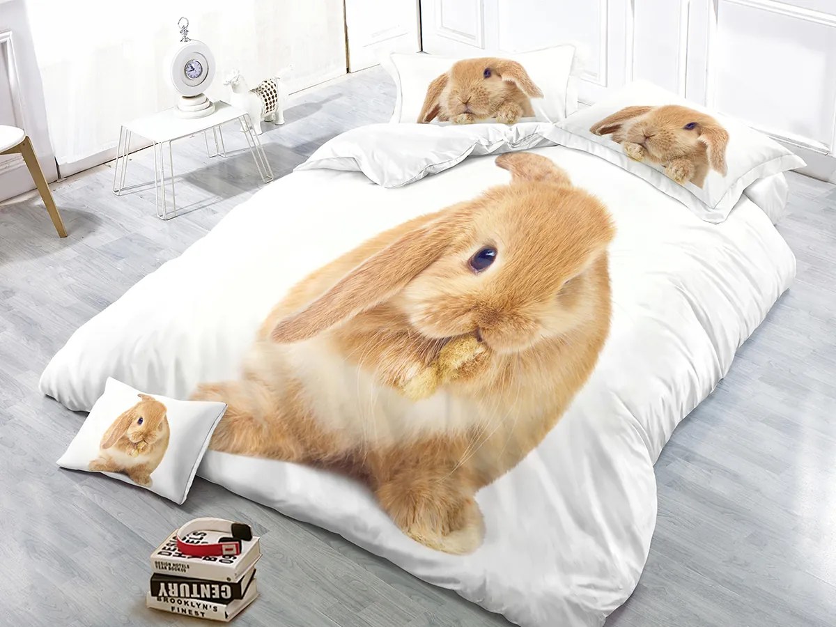 Nalaďte sa na roztomilosť! Tento hebký huňatý zajačik a obliečky 3D to zvládnu ľavou zadnou. Krásne zjemnia nielen detskú izbičku, ale skvele sa hodia aj do vašej spálne. Kvalitná potlač farieb aj príjemný materiál vám zlepšia náladu pri každom odpočinku. Navyše oceníte vlastnosti mikrosaténu, ktorý je odolný, stálofarebný, rýchlo schne a nie je nutné ho žehliť.