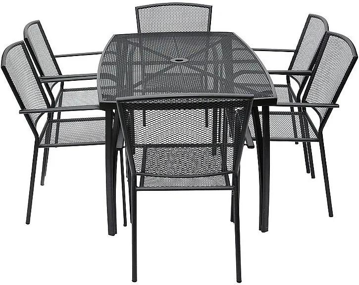 Sestava obsahuje: 1x Kovový stôl ASTOR (150 x 90 cm), 6x Kovová stolička MAYA (čierna)