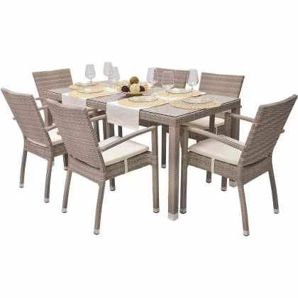 Deokork Záhradná ratanová zostava NAPOLI II. 1+6 (sivo-béžová)