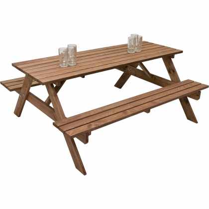 DEOKORK Masívny drevený pivný set z borovice 180 cm hrúbka 30 mm (morený)