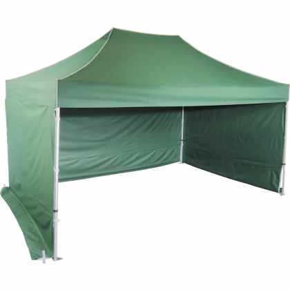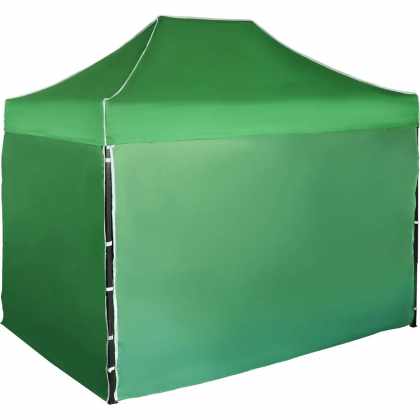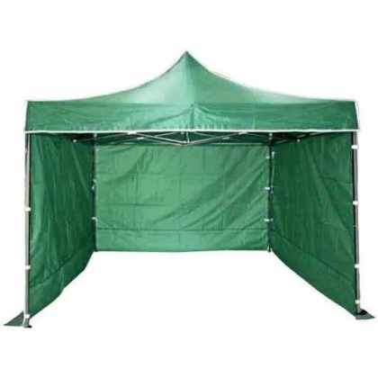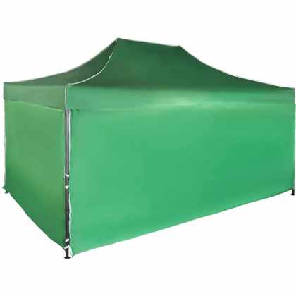 Rýchlorozkladací nožnicový stan 3×4,5m – oceľový, Zelená, 4 bočné plachty