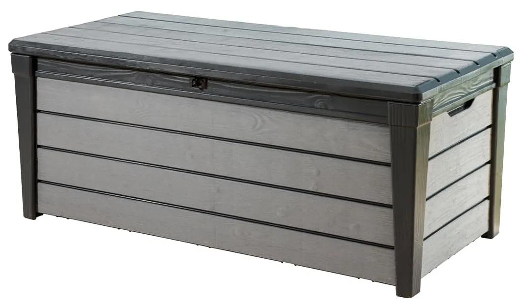Vďaka kapacite 455 litrov plastového úložného Brushwood Storage Boxu dokážete udržať terasu a záhradu pekne usporiadanú. Premyslené riešenie aj pre menšie vonkajšie priestory, ako sú balkóny. Štýlový dizajn v imitácii dreva. Na udržateľnosti nám záleží – produkt je zo 60% vyrobený z recyklovaného plastu a je 100% recyklovateľný! Dlhá životnosť a použitie kvalitných recyklovaných plastov prispieva k udržateľnosti tohto moderného záhradného plastového boxu.