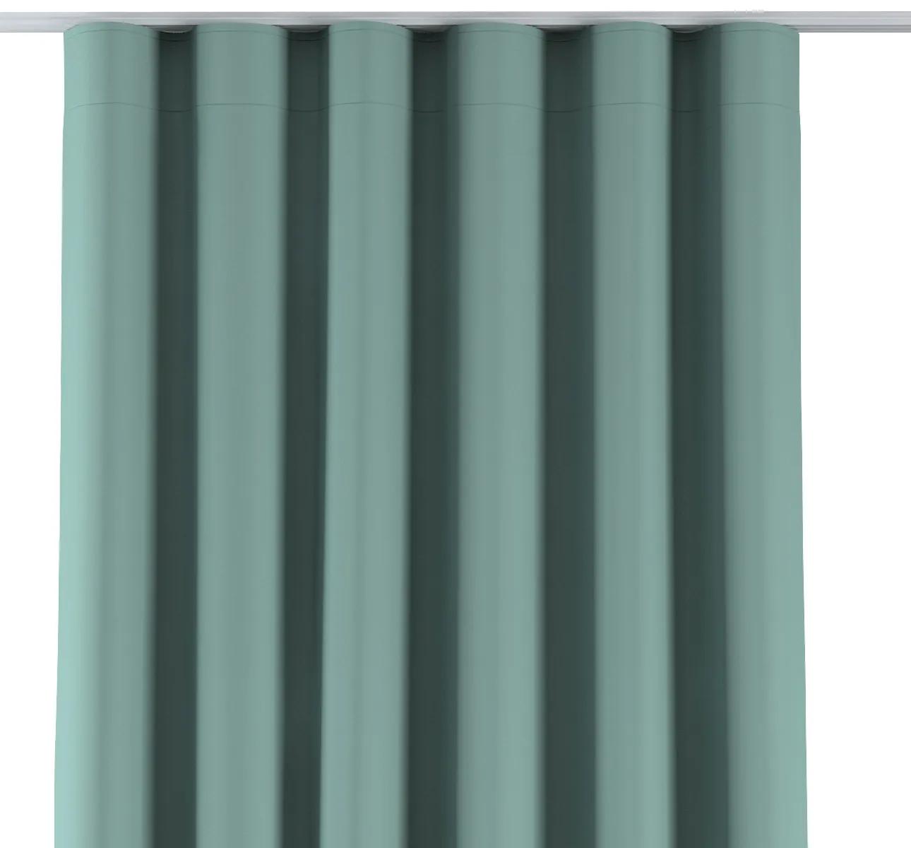 Záves má esteticky usporiadané vlnité riasenie, ktoré je ukonečné špeciálnymi slimákmi, ktoré si zakvačíte na háčiky k dodávanej retiazke a tú zasuniete do koľajnicového profilu. Vzdialenosť medzi slimákmi a teda riasením je cca. 12 cm. Spodná časť je zakončená oloveným lemom, vďaka ktorému sa látka krásne obtiahne.