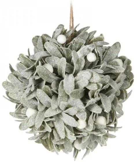 Závesná vianočná guľa s námrazou a bobulami imela. Výborne sa hodí k vianočnej výzdobe rôznych farieb. Či už je teda vaša sviatočná domácnosť zladená do bielej, striebornej, zlatej, ružovej či inej typickej vianočnej farby, touto gulou určite nič nepokazíte. Priemer gule je 15 cm.