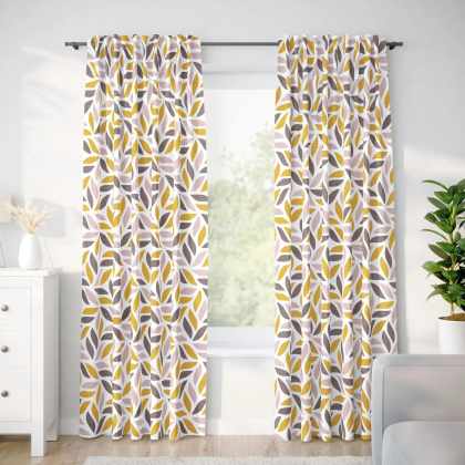 Goldea bavlnený záves – zlaté a hnedé geometrické listy 220×140 cm