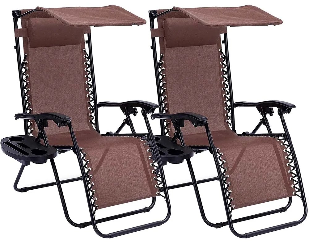 Zero gravity stolička s markízou a držiakom na pohár, 2 ks, viac farieb, nosnosť 120 kg. -Alinda.sk