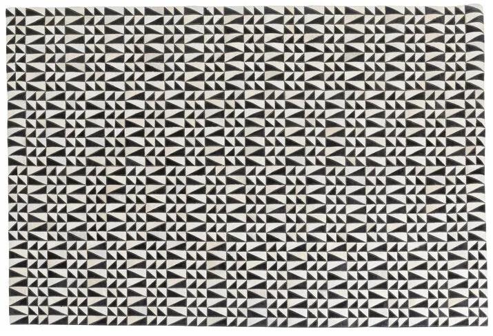 Obdĺžnikový kožený koberec v čiernobielom patchworku s vysoko kvalitným spracovaním.