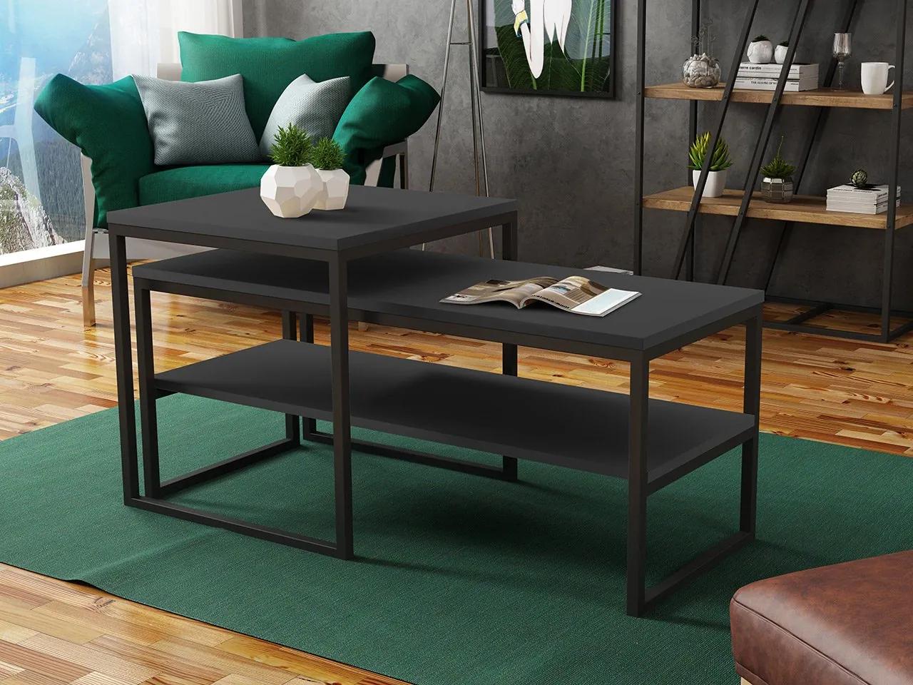 Súprava 2 konferenčných stolíkov Sotion je ideálna pre tých, ktorí hľadajú moderný a loftový nábytok do svojho interiéru. Skladá sa z dvoch kusov, z ktorých jeden je väčší a druhý menší.Väčší model ponúka priestrannú dosku, na ktorú môžete pohodlne umiestniť nápoje, knihy alebo dekorácie. Okrem toho má aj praktickú poličku, ktorá sa nachádza pod vrchnou doskou. Ponúka možnosť uloženia ďalších predmetov, ako sú časopisy, televízne ovládače alebo dekoračné vankúše. Súpravu dopĺňa druhý, menší konferenčný stolík. Napriek svojej veľkosti stále ponúka pohodlnú plochu na umiestnenie šálky kávy alebo nočnej lampy. Možno ho použiť ako ďalší dekoratívny prvok alebo ako prenosný stolík vedľa pohovky alebo kresla.Rozmery:Veľký stolík: Šírka: 100 cm, výška: 40 cm, hĺbka: 40 cm,Malý stolík: šírka: 50 cm, výška: 50 cm, hĺbka: 50 cmPrevedenie:Hrúbka laminovanej drevotrieskovej dosky 18 mm,ABS lemovanie hrán,rám z ocele, práškovo lakovaný čiernou farbou,maximálne zaťaženie: 100 kg,cena sa týka 2 stolovZáruka: 24 mesiacov