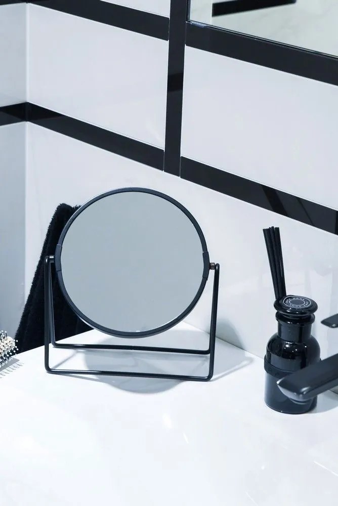 Čierne kozmetické zrkadlo so zväčšovacím sklom